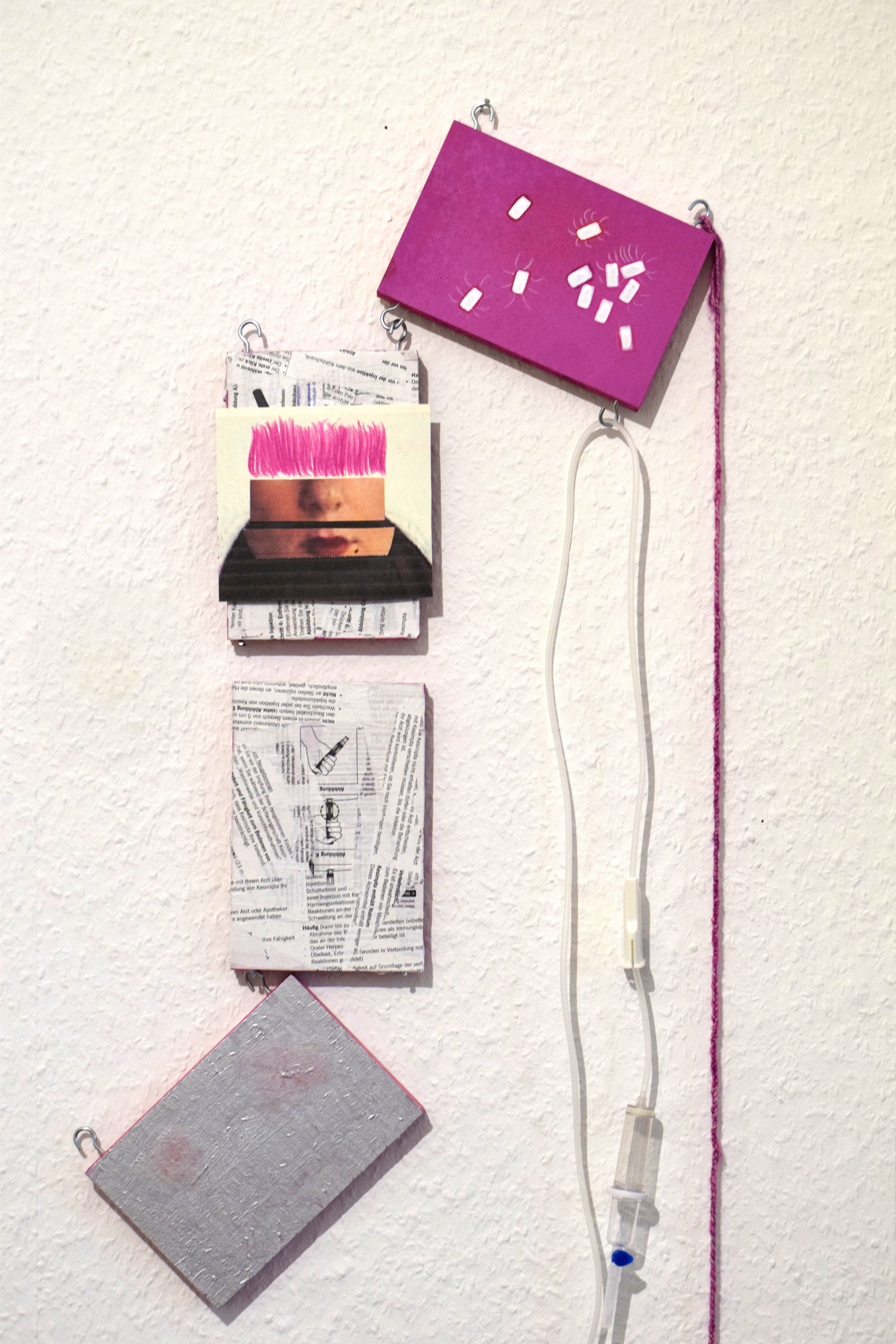 photographs, drawings, collages