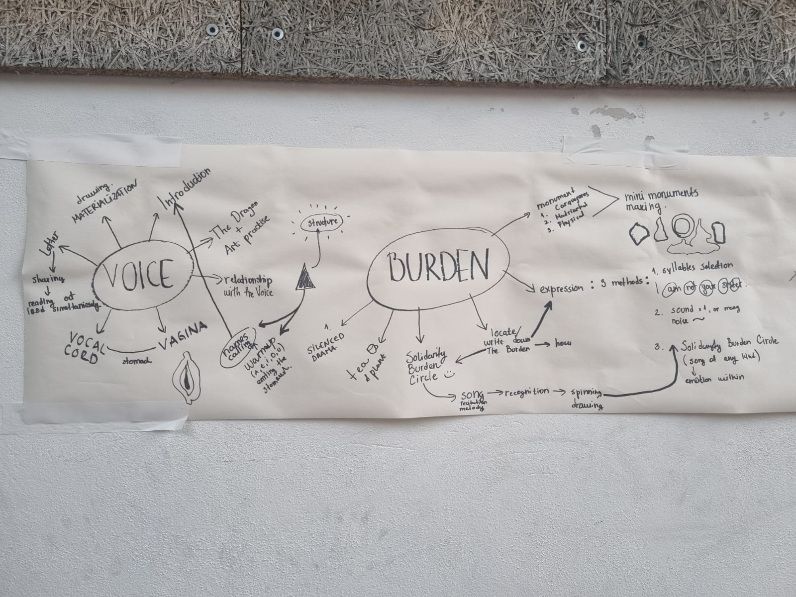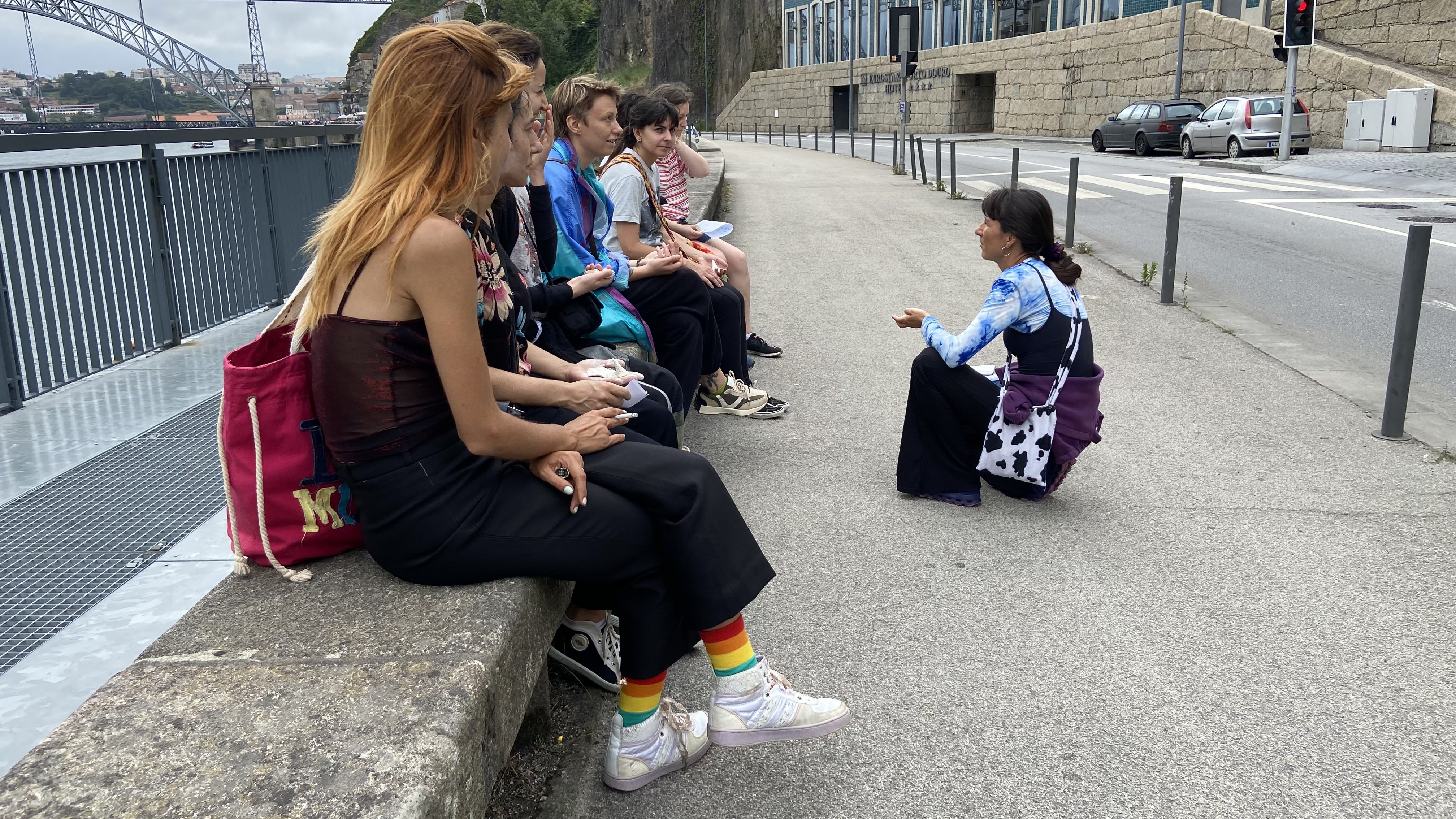 The participants engaged in various activities to unburden themselves using vocal tactics, imagination, drawing, and memory. The final outcome was a walking and vocal performance: climbing the same steep sidewalk from the coast of the Douro River up to the monument of the Carquejeiras. Through a combination of voice exercises, mini-monument clay making, Carqueja tea sessions, and performance exercises, we celebrated the sweetness of sustained female solidarity – carrying not firewood, but stories, screams, and breath.